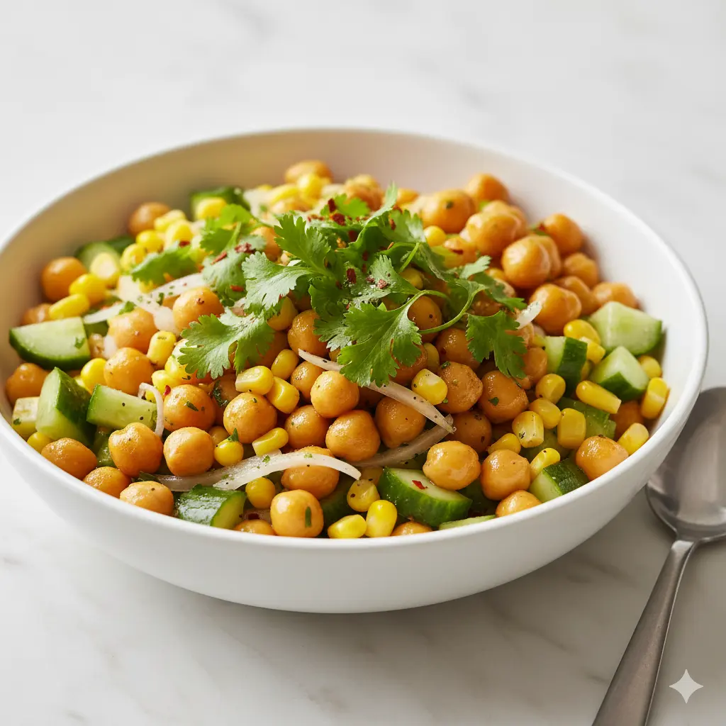 Chickpea • Sweet corn • Cucumber • Olive oil • Chutney • Coriandar leaves